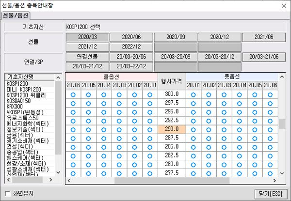 선물종목, 옵션 종목 간의 변환기능 입니다.