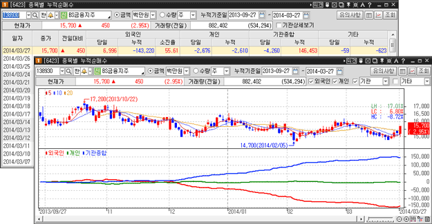 해당 종목의 투자주체를 선택하여 누적순매수 추이를 조회하실 수 있습니다.