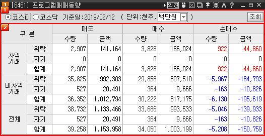 시장의 차익, 비차익, 전체 집계정보가 조회됩니다.