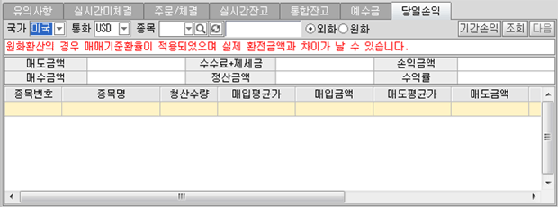 조회 시 당일의 손익을 확인할 수 있습니다.