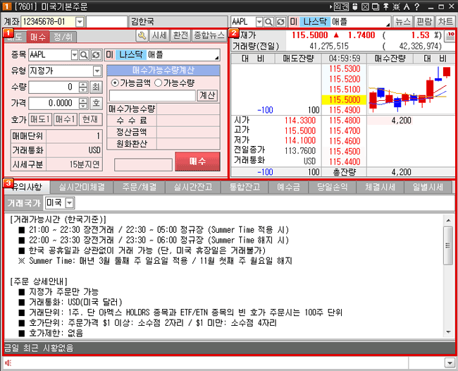 미국주식을 매매하기 위한 기본주문 화면입니다.