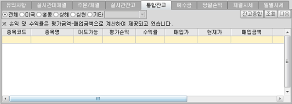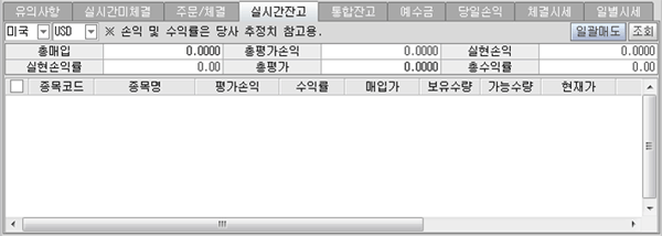 조회 시 보유하고 있는 종목의 실시간 잔고와 수익률 등을 확인할 수 있습니다.