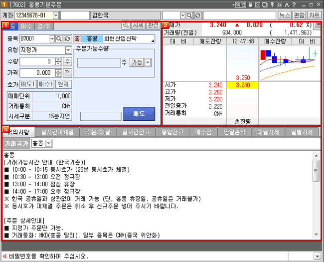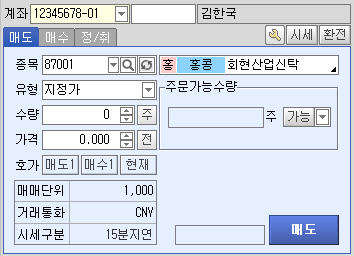 홍콩주식을 매매하기 위한 기본주문 화면입니다.