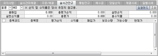 조회 시 보유하고 있는 종목의 실시간 잔고와 수익률 등을 확인할 수 있습니다.