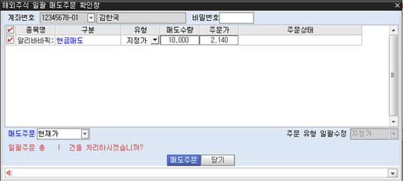 [일괄매도] 기능: 보유한 종목에서 원하는 종목을 복수 선정하여 한 화면에서 매도수량과 주문가 지정 가능.