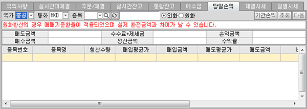 조회 시 당일의 손익을 확인할 수 있습니다.