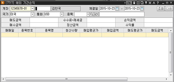 버튼 클릭 시 "[7717]기간손익" 화면이 팝업 되어 기간별로 손익조회를 할 수 있습니다.