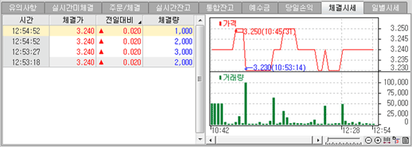 원하는 종목의 체결시세를 시간별로 확인할 수 있습니다.