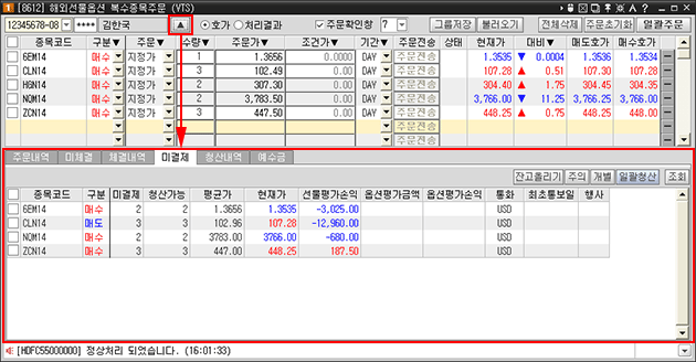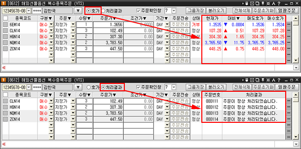 : 해외선물옵션 복수종목주문화면은 일반계좌 전용주문화면으로 계좌속성이 헷지(Hedge)인 경우 사용이 불가합니다.