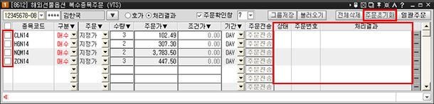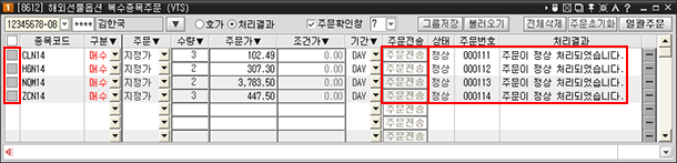 처리결과 : 화면 우측 영역에 조회 종목의 주문 처리결과가 조회됩니다.