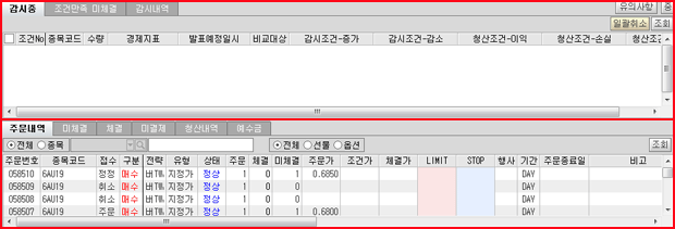 감시중 : 현재 감시중인 주문조건을 조회합니다.