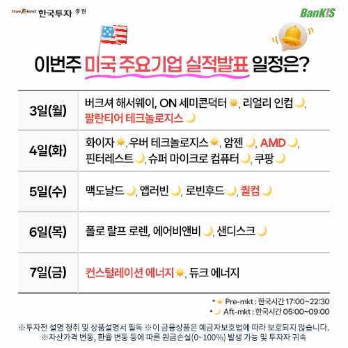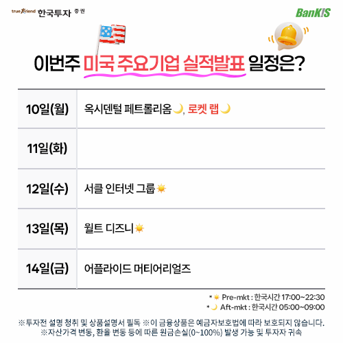 제목 [투자안내] [해외주식]미국 주요기업 실적발표 일정 안내(11월1~2주차) 조회 292 등록일 2025.10.31 17:16