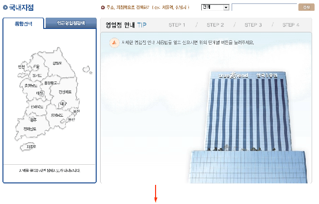 당사의 지역별 모든 영업점을 조회할 수 있는 화면입니다.