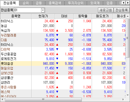 관심종목 : 사용자가 설정한 관심종목들의 시세를 조회하거나 새로이 추가하실 수 있습니다.